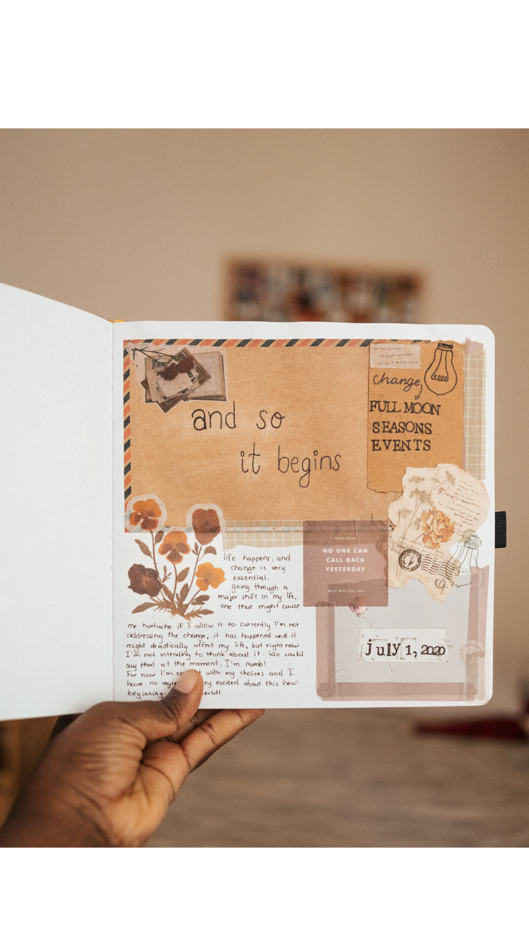 Gestalte dein eigenes Kunstwerk voller Erinnerungen! Mit nachhaltigen Materialien wie getrockneten Blumen, Stickern, Papier und allem, was dir gefällt, kannst du deiner Kreativität freien Lauf lassen. Schreibe, klebe, gestalte, male – alles was du schön findest wird Teil deines persönlichen Journals.